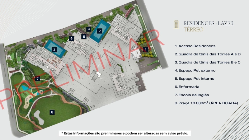 Como complemento a essa escala rara na cidade, o condomínio conta com uma praça integrada de cerca de 10 mil m². Dessa forma, o verde deixa de ser um detalhe e passa a ser protagonista da experiência de morar. Assim, caminhar ao ar livre, relaxar em áreas abertas e conviver em espaços amplos tornam-se parte da rotina.