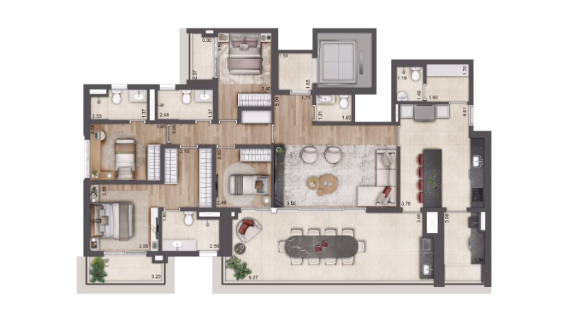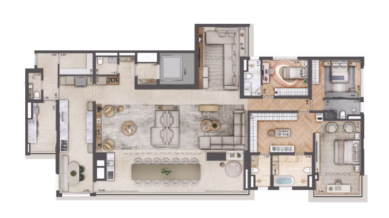 As suítes, por sua vez, foram projetadas como verdadeiros refúgios. Com infraestrutura moderna e acabamentos de alto padrão, elas proporcionam conforto absoluto no dia a dia. Além disso, o empreendimento oferece preparação para ar-condicionado, automação e soluções contemporâneas que elevam a experiência de morar. Assim, cada unidade consolida o projeto como referência de apartamento de luxo em São Paulo, combinando elegância, funcionalidade e bem-estar.